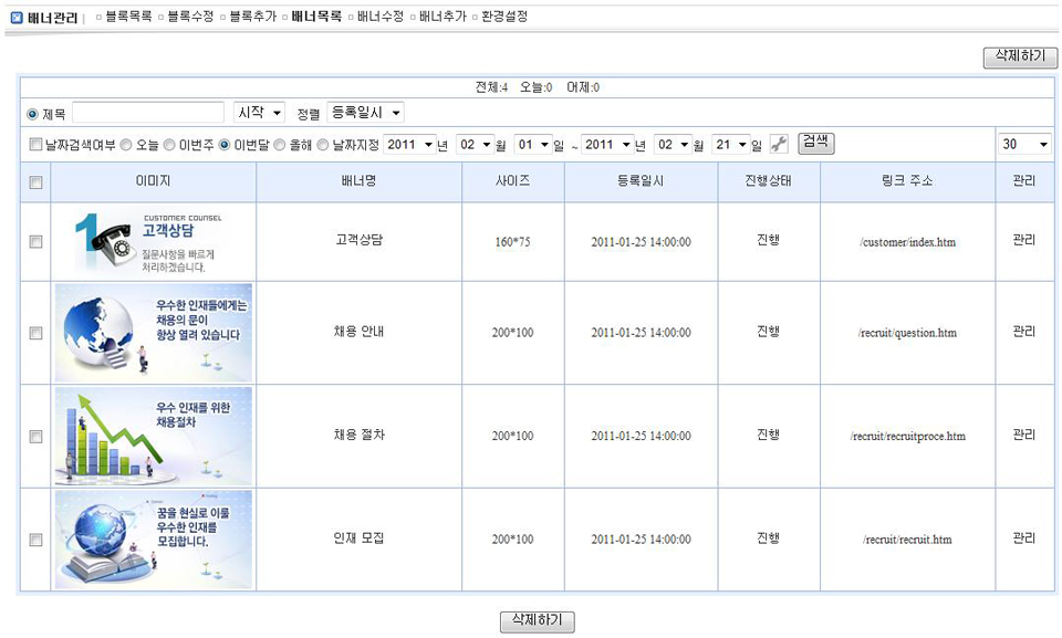 | (3) 사용 중인 배너는 삭제할 수 없습니다. |