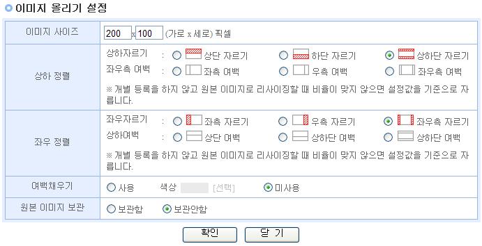 | (4) 이미지올리기 설정의 기능은 다음과 같습니다. |