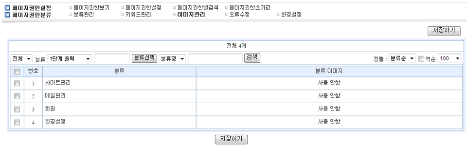 | (4) 권한관리 : 해당 분류에 권한을 적용하고자 할 때는 사용함을 설정합니다. |