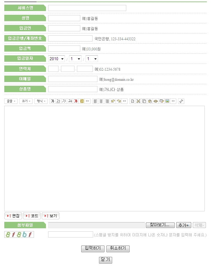 | (2) 폼메일명과 템플릿코드는 중복이 되지 않도록 지정하여야 합니다. |