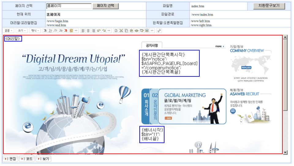 HOME > 호스팅 > 아사프로2.0 > 만들기 > 홈페이지 만들기 > 메인만들기 |