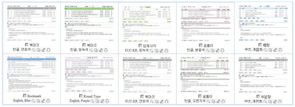 | ① 다양한 스킨 : 용도별 스킨(공동사용, 개별사용), 언어별 스킨(한글, 中文, 日本語, English 스킨 등), 디바이스별 스킨(PC용, 스마트폰용), 색상별 스킨(담청색, 연초록색, 회색 등) 등 다양한 스킨을 제공합니다. |