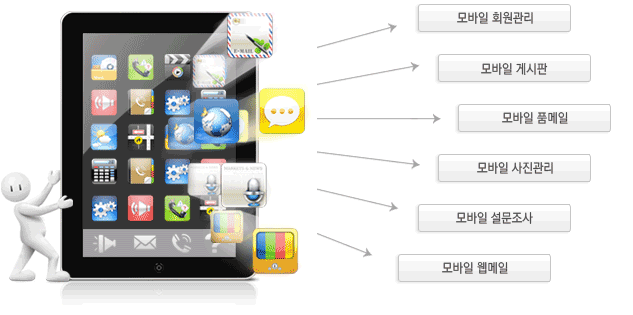 | ② 모바일 웹빌더 : 아사프로2.0은 스마트폰 웹사이트를 자동으로 제작해 주는 모바일 웹빌더입니다. 아사프로2.0은 모바일 회원관리, 모바일 게시판, 모바일 사진관리 등의 기능이 있습니다. PC용 웹사이트와 모바일용 웹사이트를 하나의 관리자 사이트에서 통일적으로 관리할 수 있습니다. |
