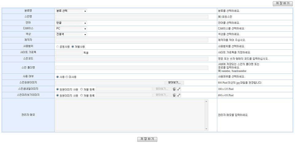 | ▸ 게시판의 스킨관리 페이지는 사이트관리 > 게시판관리에 있습니다. |