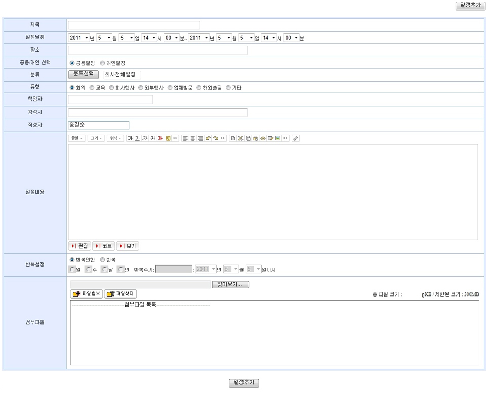 | 일정 추가 |