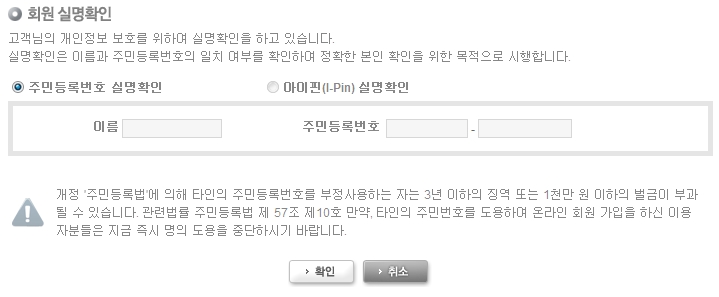 3. 각 절차는 환경설정 페이지 설정값을 바꾸면 생략이 가능합니다. 만약 실명인증을 하지 않을 경우에는 환경설정에서 실명인증 옵션을 사용하지 않음으로 설 정하면 회원가입 시 실명인증 절차 생략됩니다. |