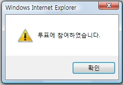 | (2) 답변 항목을 선택하고 투표하기를 하면 다음과 같은 투표하였다는 알림창이 뜹니다. |