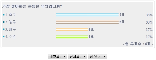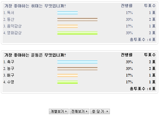 | (5) 전체보기를 클릭하면 설문조사분류에 해당하는 모든 지난 투표결과를 포함하여 보여줍니다. |