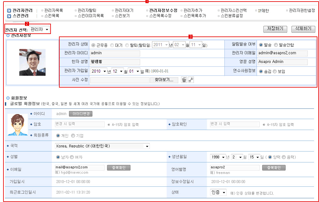 HOME > 호스팅 > 아사프로2.0 > 환경설정 > 관리자관리 > 관리자 관리 |