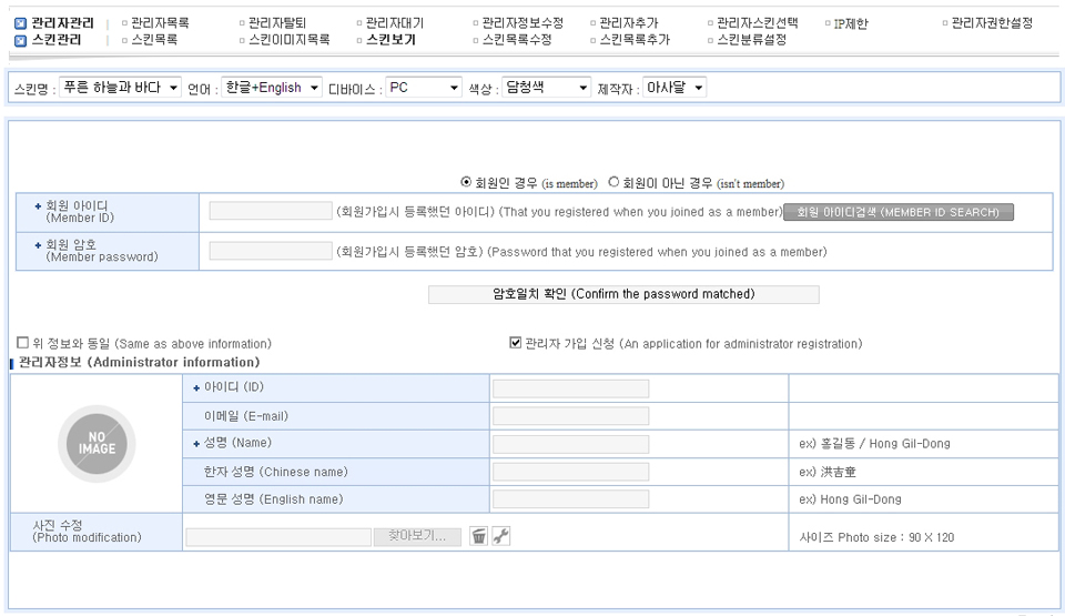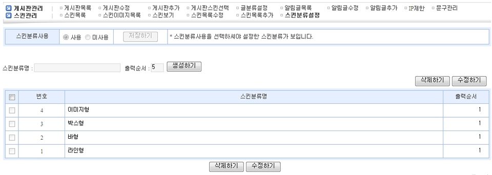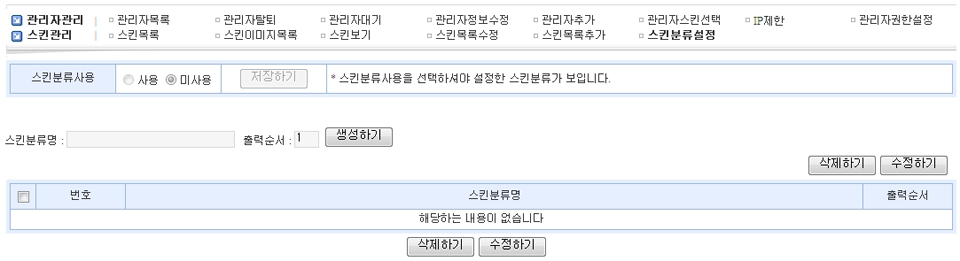 | (2) 관리자의 경우 스킨분류설정은 미사용입니다. |