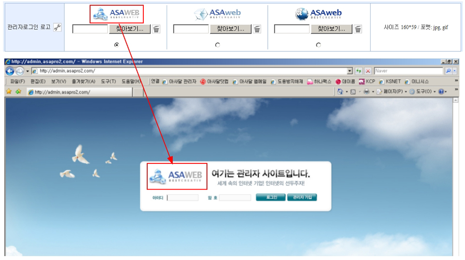 | (1) 관리자로그인 로고 : 관리자사이트에 로그인하는 페이지에 표시될 로고를 선택할 수 있습니다. 자사의 로고를 등록하여 사용할 수 있습니다. |