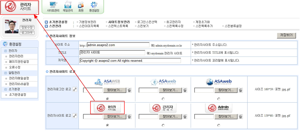 HOME > 호스팅 > 아사프로2.0 > 환경설정 > 초기환경 > 사이트정보관리 |