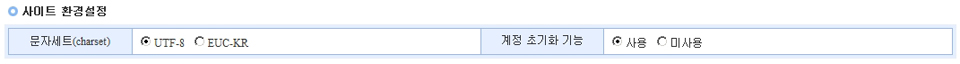 | (1) 문자세트 : 사이트의 문자세트 종류를 선택할 수 있습니다. |