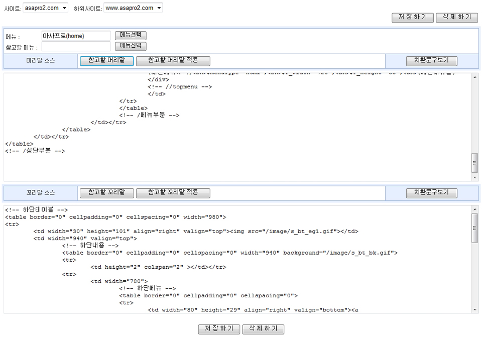 HOME > 호스팅 > 아사프로2.0 > 웹빌더관리 > 페이지관리 > 머리말/꼬리말편집 |