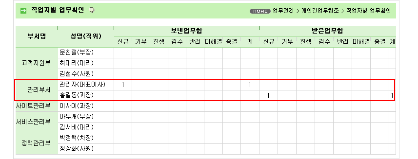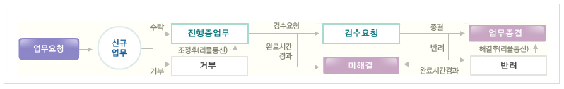 | 개인간업무협조 업무관리에 있어서 필요한 업무를 요청 또는 확인할 수 있으며 주요 업무를 한 눈에 파악할 수 있습니다. |