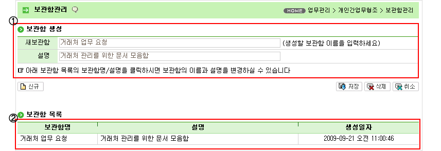 | 사용자가 업무에 필요한 별도 보관함을 관리할 수 있습니다. |