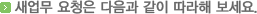 사용자가 구성원들에게 새업무를 요청할 수 있으며 새업무 요청, 강제작업지시, 구두지시 입력으로 나뉘어져 있습니다.위 세 가지 업무 요청 방법은 다음과 같이 업무 진행