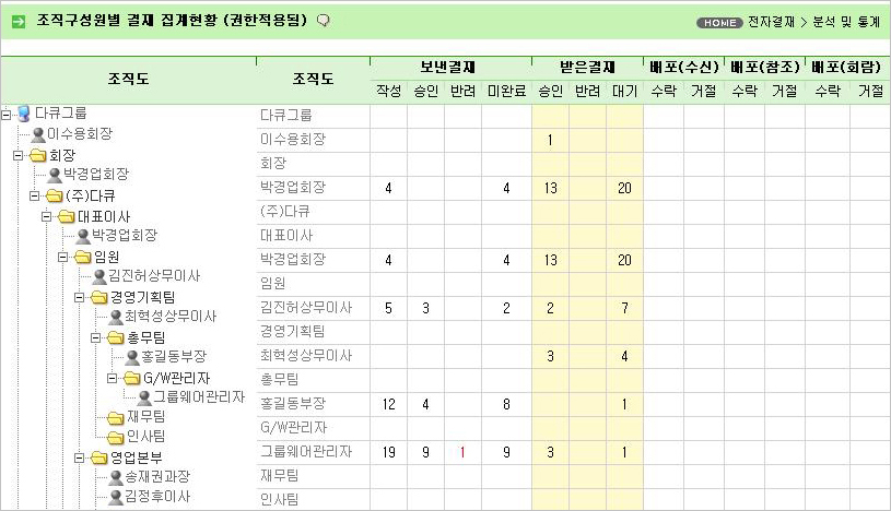⑤ 결재함에 등록된 조직 구성별 결재현황을 볼 수 있습니다.