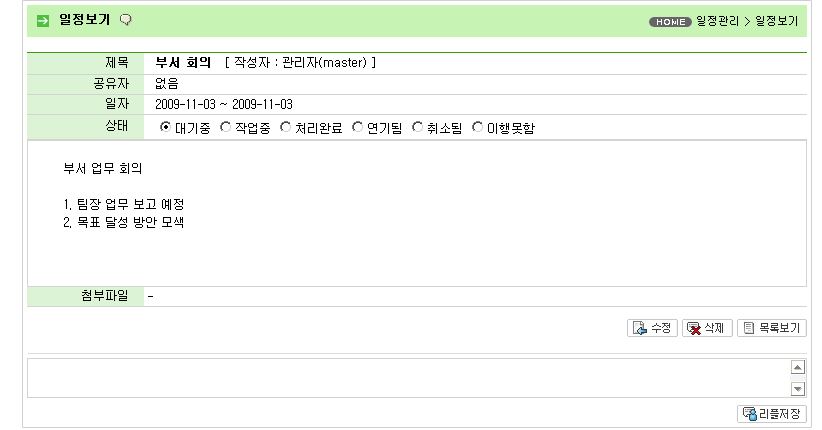 그룹웨어 일정관리에 등록된 일정을 검색 및 열람할 수 있습니다.