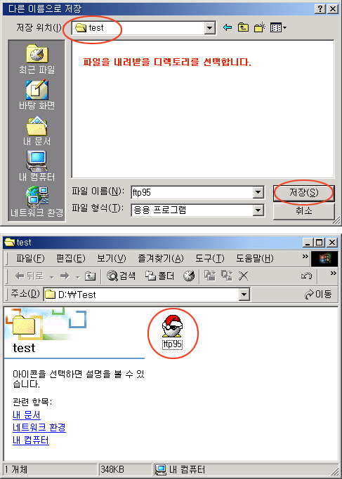 • 파일을 내려받을 디렉터리를 선택한 후 "저장" 버튼을 누릅니다.