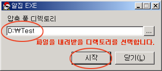 • 압축풀기 : 내려받은 파일 ftp95.exe 를 두 번 클릭하면 아래와 같은 화면이 뜹니다. 압축을 풀 디렉터리를 선택한 후 시작 버튼을 누릅니다.