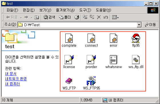 • 아래와 같이 압축이 풀려 FTP 프로그램 관련 파일들이 선택한 디렉터리에 보일 것입니다. 이로써 프로그램 설치가 완료되었습니다.