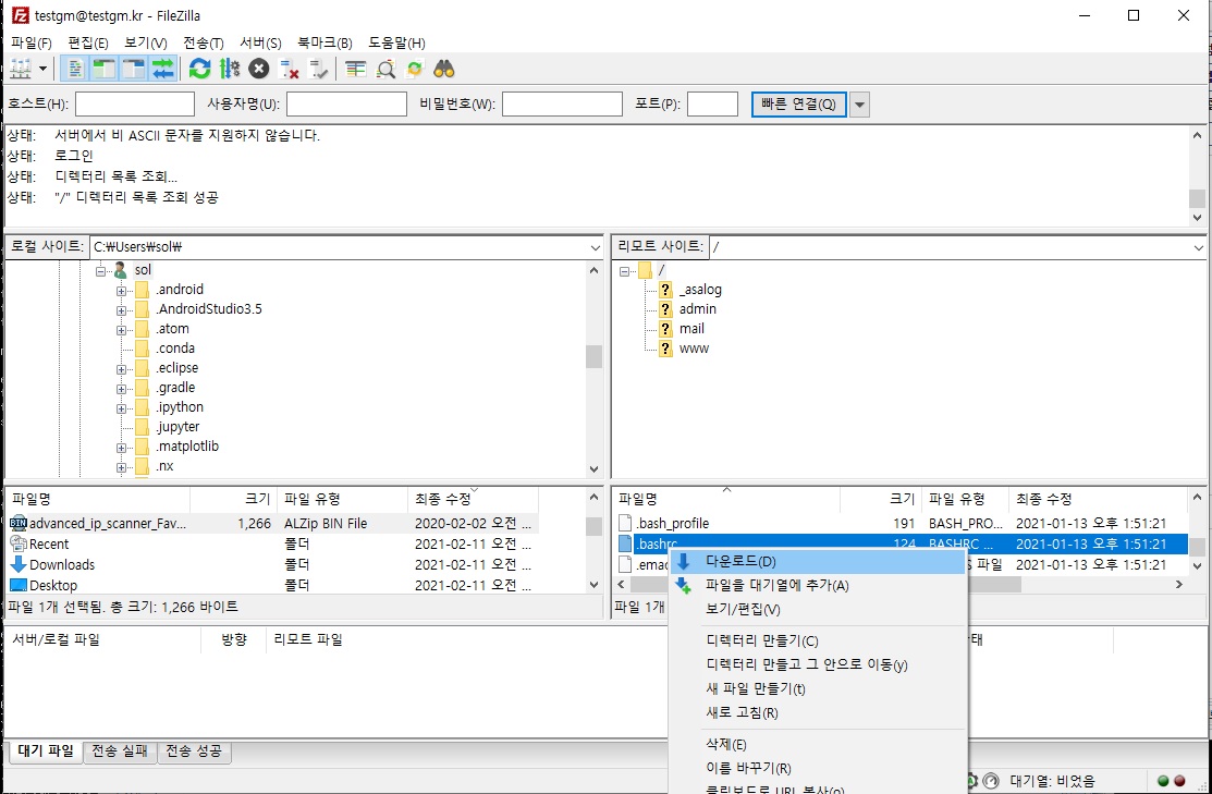 3. 파일질라 프로그램 사용하기
