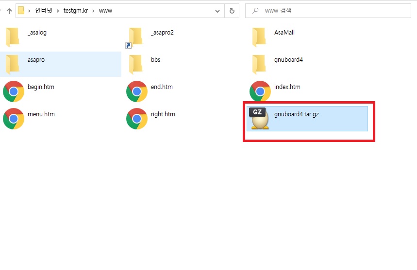 (고객님께서 서버에 압축을 해제 후 그누보드 폴더를 복사하였다면 바로 다음 단계를 진행하십시오)