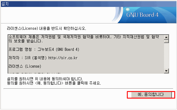 1단계, 라이선스 내용을 모두 읽으신 후에 "예, 동의합니다" 버튼을 클릭해 주십시오