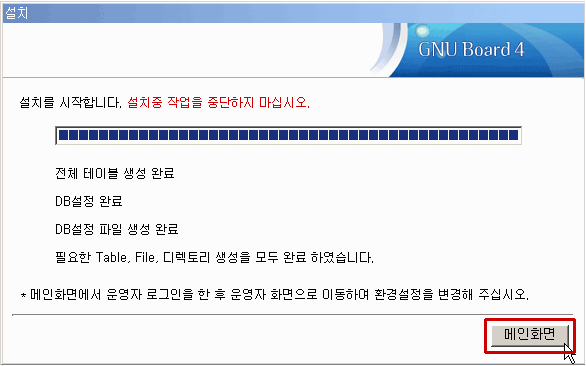 인터넷 익스플로러로 "http://고객님의 도메인명/gnuboard4" 사이트에 들어 가면 아래와 같은 메시지가 보입니다.