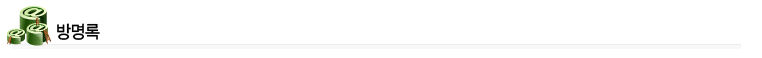 방명록에 원하지 않는 광고가 올라온 경우, 혹은 같은 사람이 실수로 두 번 이상 같은 글을 올린 경우에는 삭제 기능을 사용하시기 바랍니다. 방명록에 올라온 글을 삭제하려면, 해당 글 윗부분에 있는 동그라미 속의 가위표( )를 누르고 관리자 패스워드를 입력하면 됩니다. |