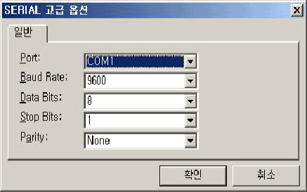 - 포트 번호는 컴퓨터에 연결된 포트를 확인하여 선택한다. 포트번호를 정확히 모를 경우 COM1~COM4까지 하나씩 선택하면서 접속을 시도해 보면 된다. |
