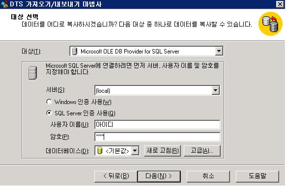 3. 데이터를 복사할 대상 서버의 정보를 입력한 후 다음으로 넘어갑니다.