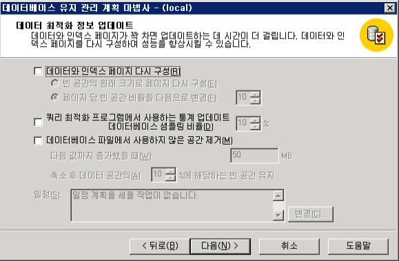 | (3) 데이터 최적화 정보 업데이트 - 다음으로 넘어간다. |