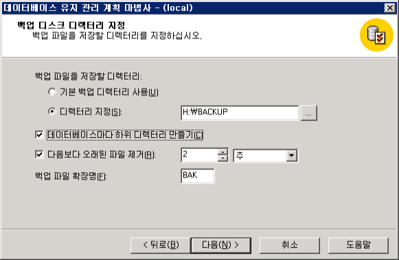 | ① 백업 파일을 저장할 디렉터리 - H:\BACKUP으로 지정한다. |