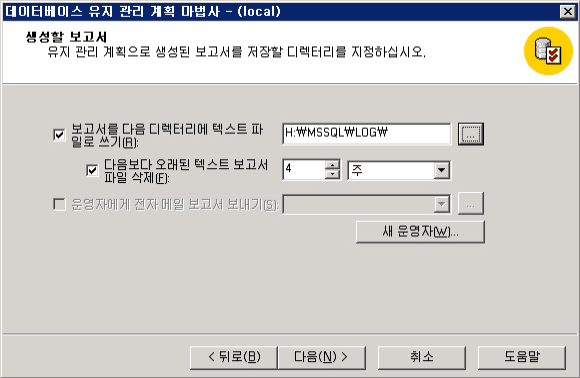 | (8) 생성할 보고서 - 유지 관리 계획으로 생성된 보고서를 저장할 디렉터리를 지정한다. |
