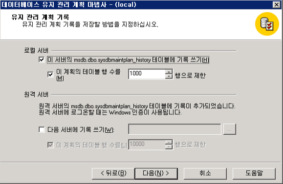 | (9) 유지 관리 계획 기록 - 다음으로 넘어간다. |