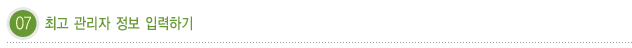 MySQL DB 입력이 정상적으로 이루어졌다면 아래와 같이 기본으로 이용될 최고 관리자 정보 입력화면이 나옵니다.