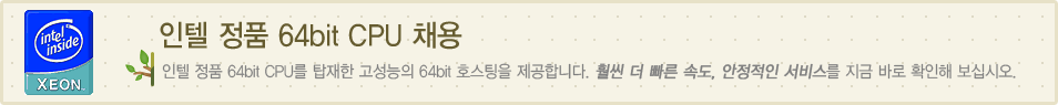 저희 회사에서는 인텔 정품 64bit CPU를 사용하여 보다 안정적인 서비스를 제공하고 있습니다.