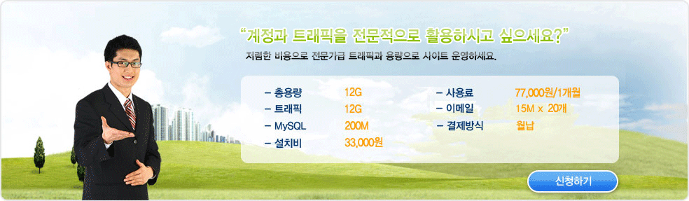 |  저렴한 비용으로 트래픽, 용량에 대한 걱정없이 사이트 운영을 하시고 싶은 분들에게 추천합니다.