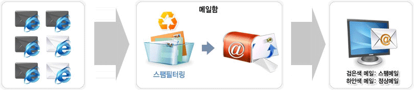 일반적인 스팸필터링이란 특정한 조건을 바탕으로 사용자가 원하는 메일만 받아 볼 수 있도록 해 주는 기술입니다.
