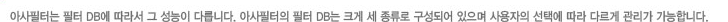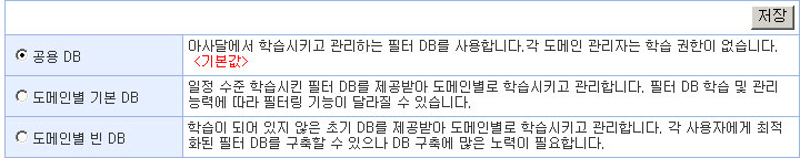 학습이 되어 있지 않은 초기 DB를 사용하실 수 있습니다. 이때 각 도메인 성격에 맞는 최적화된 필터 DB를 구현할 수 있는 장점이 있으며 일정 학습량이 되기 전에는 필터 DB 구축에 많은 노력이 필요합니다.