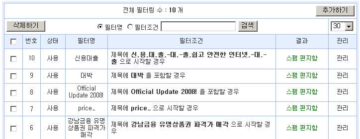 5. 특정 단어나 문구를 미리 등록하고 정해진 조건에 해당하는 경우 스팸처리할 수 있도록 서버환경에서 구현되어 있습니다.
