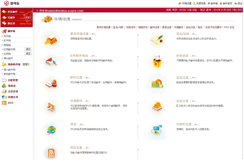 - 영어, 한글+중문 등 다양한 언어로 된 웹메일 스킨을 추가로 제공할 예정입니다.