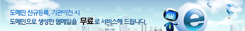 - 도메인이 삭제되었거나 기관이전이 신청된 도메인은 무료 웹메일 서비스가 해지됩니다.