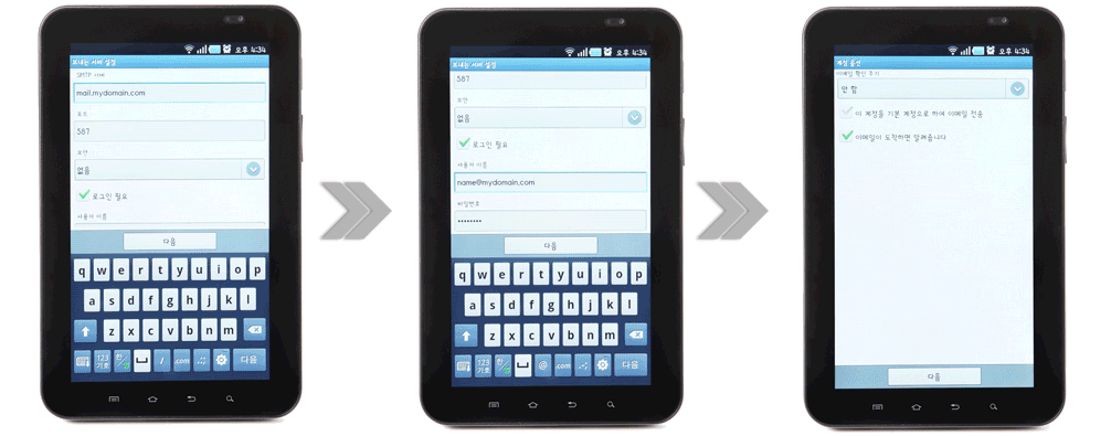 9. 이메일 확인 주기를 선택한 후 ‘이메일이 도착하면 알려줍니다’ 항목을 체크하고 ‘다음’ 버튼을 클릭합니다. |