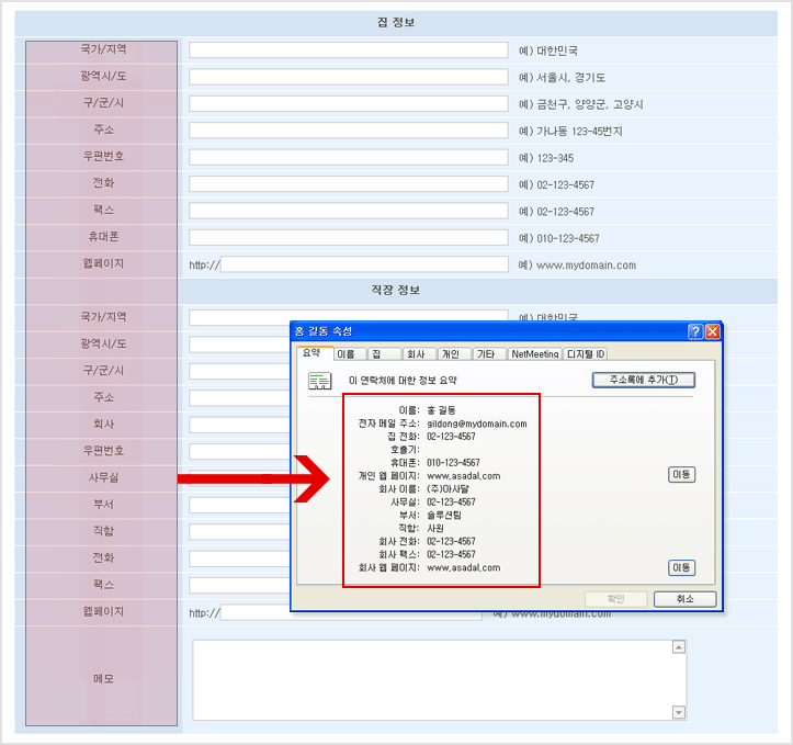명함 : vCARD2.1을 지원하는 명함기능으로 다양한 정보를 입력할 수 있습니다. |