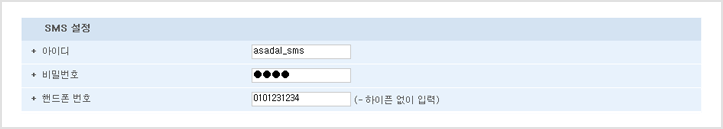 아이디 : 고객님께서 SMS 호스팅을 신청할 때 선택하신 아이디를 기입하십시오.