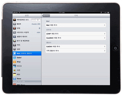 9. 계정 설정이 완료되면 'Mail, 연락처, 캘린더'메뉴에 추가한 계정 항목이 나타납니다. 추가한 계정 항목을 클릭합니다. |