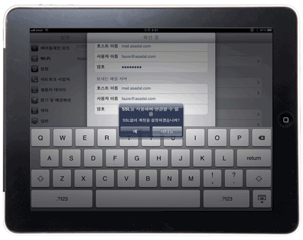8. "SSL을 사용하여 연결할 수 없음. SSL없이 계정을 설정하겠습니까?"라는 물음이 나오면 "아니오"를 선택합니다.